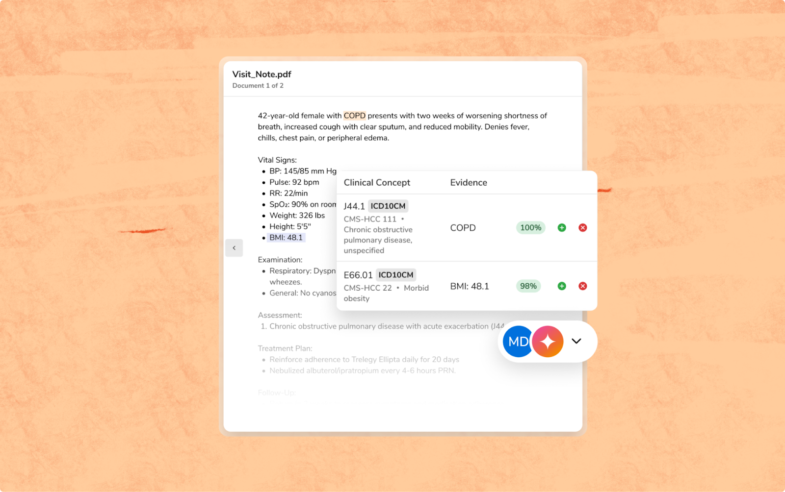 Risk adjustment still happens after the fact. While physicians document care inside the EHR, coding teams often review static PDFs weeks later. This disconnect costs more than revenue. It drains time, erodes trust, and weakens competitive position.