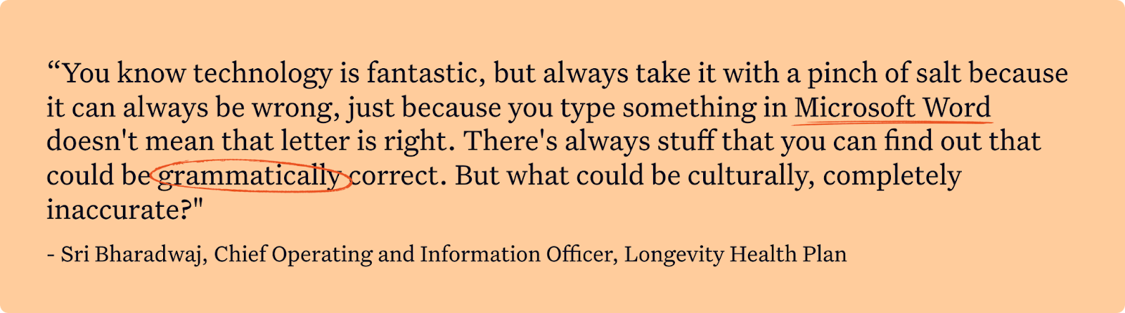 Similarly, Longevity Health Plan has adopted a transparency-first approach to educate its clinicians. They ensure clinicians understand where the data is coming from, what’s being shared, and how algorithms work. By doing so, they are presenting “AI as a choice” rather than a mandate for improving clinical documentation.